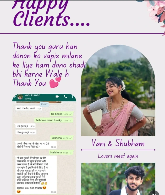 ALL CLIENST HAVE UNFORGATEBALE EXPREINCE WE GIVE US BEST AND PARMANENT RESULT AND ACCURATE PREDICTIONS.